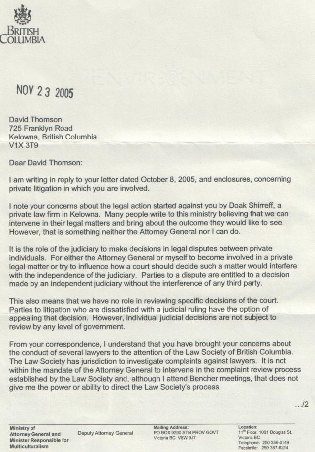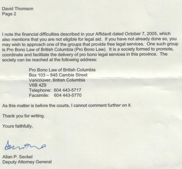 mp3 recordings that I'd filed and served on Grant Hardwick's "bat", Roy Sommerey. One of the packages that I sent off, went to Allan Seckel, Deputy Attorney General to Wally Oppal.