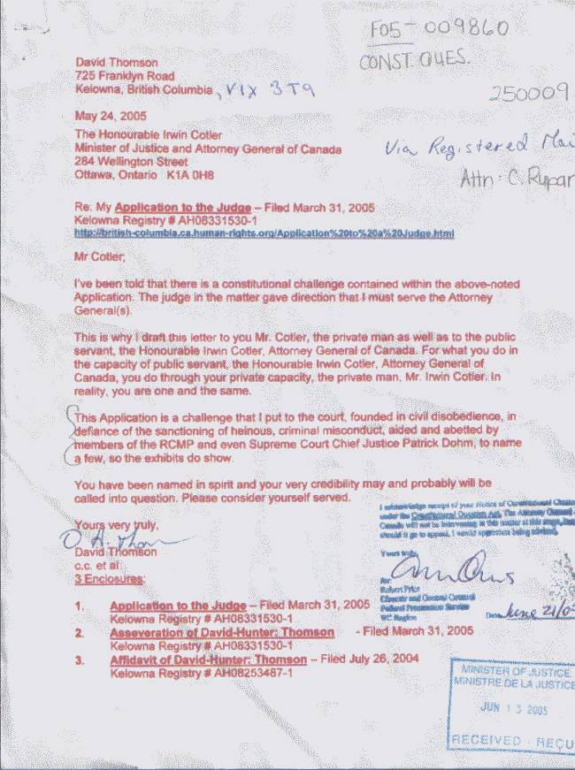 Essentially, as I presently understand, "the Crown" is taking the position that I may speak for myself but not for any other. So whatever happened to the notion of "equality before and under the law", then?