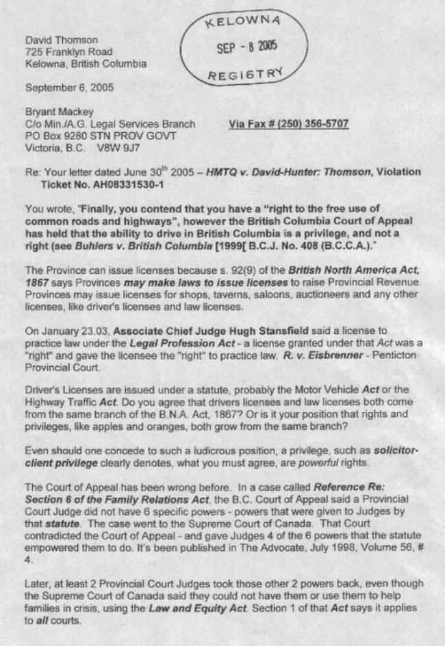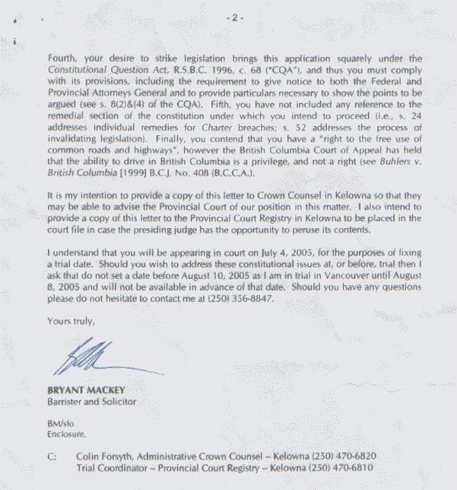 On October 5th, 2005, I filed a copy of a Notice to Admit that I'd drafted, serving a copy, via fax, to Bryant Mackey. A pre-trial hearing is set for March 30th, 2006, 9:30 a.m., in the Kelowna Law Courts - I'm not sure which room so I intend to get there early and inquire.