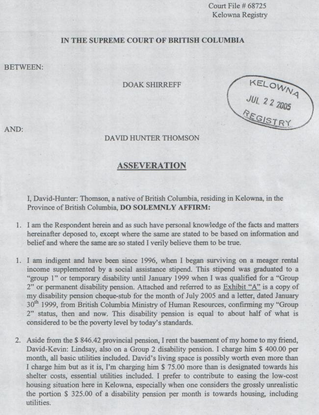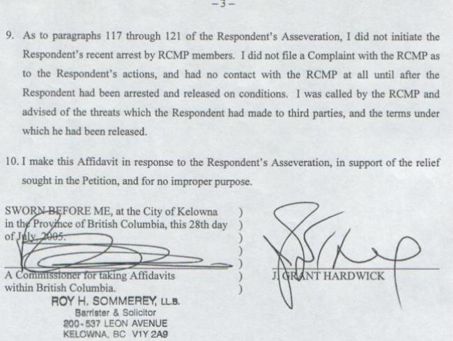 In Response to the above Asseveration, Mr. Hardick filed an Affidavit, essentially dismissing my assertions, saying that the bulk of them are not relevent.