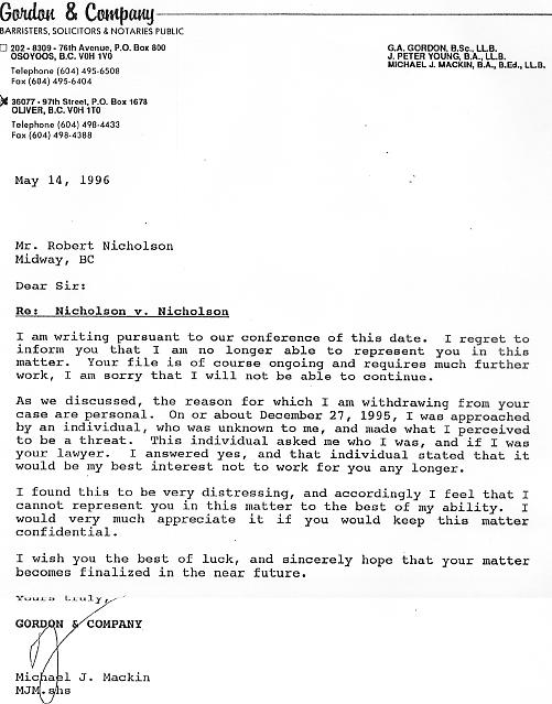 Mr. Nicholson's success in keeping legal counsel has been dismal. More recently