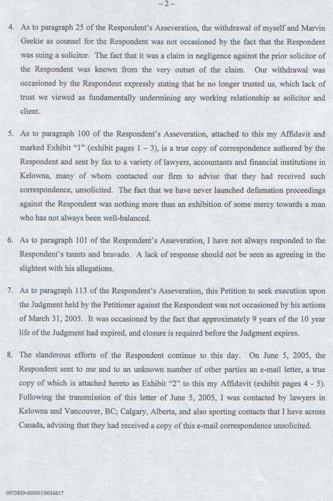 Seriously Roy, your absolutely contemptuous disregard for my right to speak the truth freely, is most reprehensible. It amounts to no less than extortion, but then this whole matter has been no less than an excercise in criminal fraud and extortion. I also sent a copy of my Affidavit, including a compact disk of the tape-recorded conversation in mp3 format, to Jonathan Corbett, the latest agent from the Lawyers' Insurance Fund, who inherited the file, now, from Hazel Cords. I never did get a reply from Hazel Cords to my letter, wherein I asked her if it was her intention to become implicated in fraud and extortion... I guess not, eh. Yours very truly, |